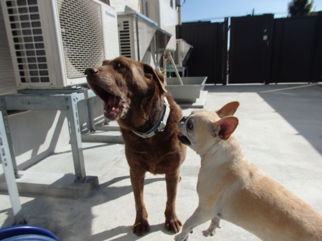 今日はカノンとマイロで、病院裏のドッグランへ。