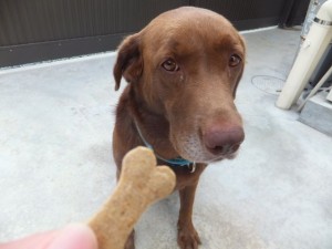 (ビスケットを)ぽいっ