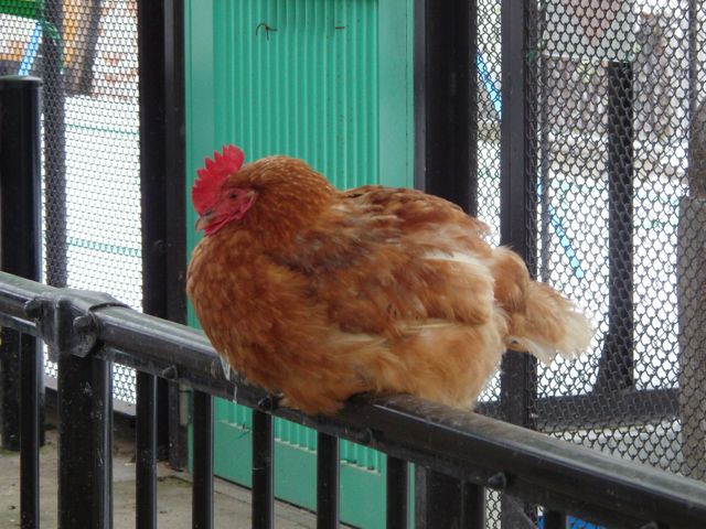 鳥舎に入ると、にわとりが後をつけてきます。